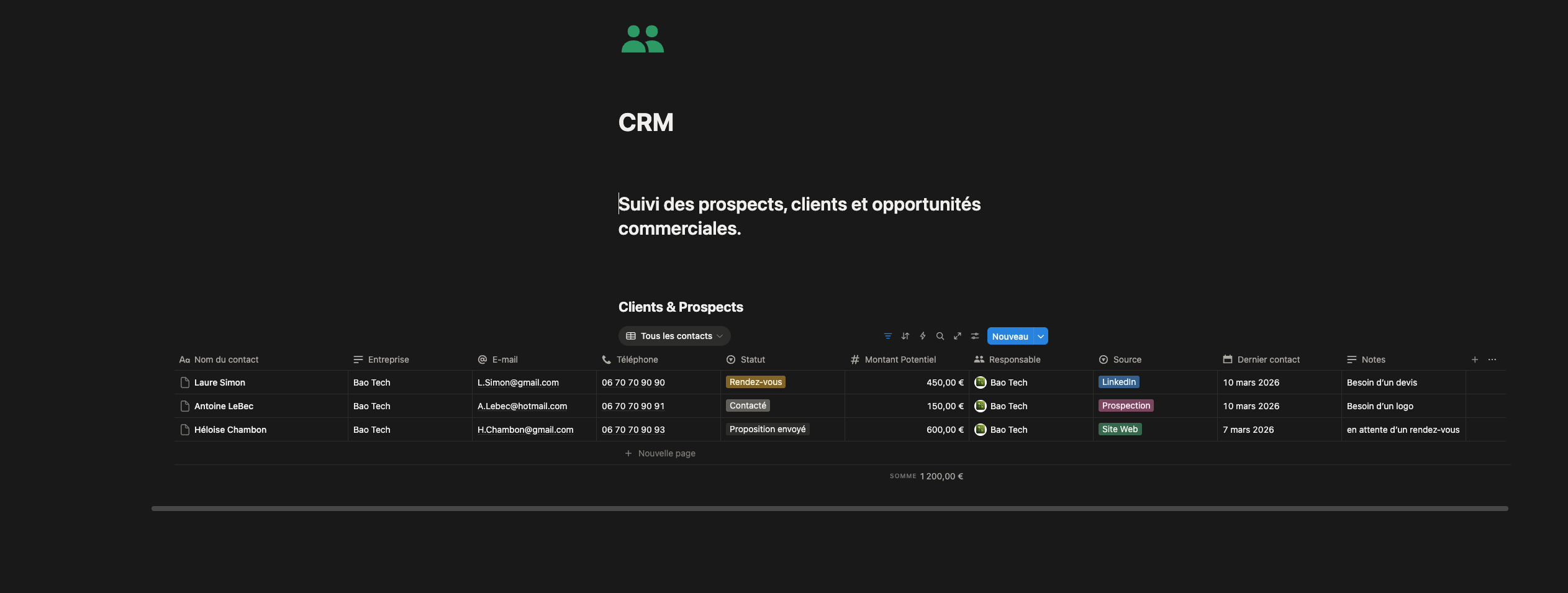 Suivi clair de vos prospects et clients